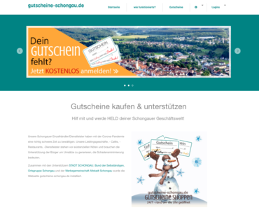 Für die Schongauer Einzelhändler und Dienstleister wurde in Zusammenarbeit mit der STADT SCHONGAU, Bund der Selbständigen, Ortsgruppe Schongau und der Werbegemeinschaft Altstadt Schongau das Gutscheinportal gutscheine-schongau.de installiert.