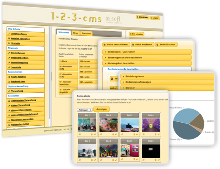 Überzeugen Sie sich von unserem leistungsfähigen CMS-System, dass sich modular an Ihre Bedürfnisse anpasst. Es wächst mit ihnen mit und wir freuen uns für Sie tätig werden zu können.