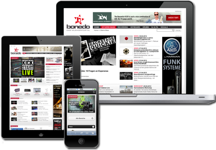 Nachdem wir bereits seit längerer Zeit den Auftritt von Bonedo betreut hatten, haben wir 2010 den Relaunch der Online-Community für Musiker von der ersten Minute an begleitet und später als TYPO3 Entwicklung auf Basis von extbase umgesetzt.