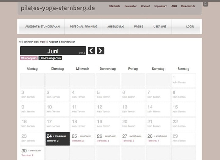 Bereits seit vielen Jahren betreuen wir das Pilates und Yoga Studio aus Starnberg. Der Webauftritt wird mit unserem hauseigenen CMS erfolgreich realisiert. Größte Herausforderung eines Studios, ist die Kommunikation mit dem Kunden über stattfindente Kurse und die Rückmeldung der Kunden, wann sie teilnehmen wollen. Als letztes haben wir deshalb ein völlig neuartiges Modul, das über einen einfachen Kalender weit hinausgeht, konzipiert und umgesetzt. Kunden können mit Hilfe eines Frontend-Logins sich in Kurse ein- und austragen. Trainer erhalten eine spezielle Ansicht der Belegung der Kurse. Ausserdem präsentiert das Modul alle Kurse und Events in ansprechender Form und bietet die Möglichkeit sich online dafür zu registrieren.